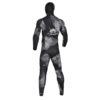 The upper part has a special chest reinforcement, providing extra protection, especially when loading equipment. Additionally, both the jacket and pants feature reinforced elbows and knees, ensuring durability even during intense use. The wetsuit's design includes a minimal number of seams, particularly in the armpit area, enhancing elasticity and allowing even greater freedom of movement underwater.