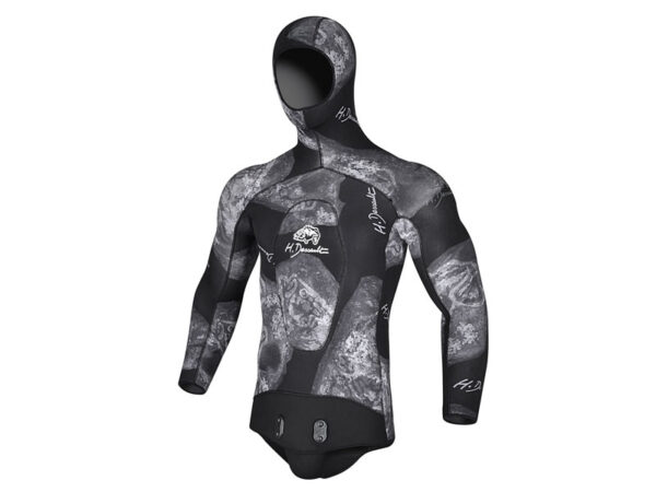 Discover a professional-grade H. Dessault Black side 7 mm Spearfishing 2-piece suit, specially designed for diving in various conditions. Made from single-lined neoprene rubber, this wetsuit features an elastic camouflaged outer lining that provides excellent thermal insulation and exceptional freedom of movement underwater. Perfect for both beginners and experienced divers seeking comfort and protection.