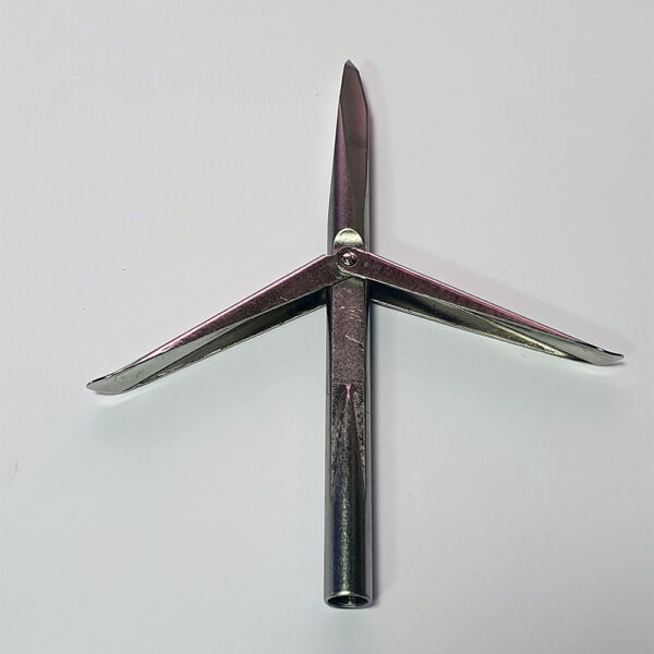 Three-edged, originally sharpened, with special recesses, extremely sharp cutting edges, tip with two leaves. The head is not replaceable. Thread M7, the tip is suitable for all popular gun harpoons.