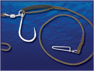 An innovative way to anchor floats to an area without using cumbersome drop weights. The reef hook is attached to the end of the floatline before the gun and is effective even in strong currents.