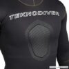 Two-piece suit, hooded vest with clip locking adjustable, Melco pad chest protection. Hiwaist trousers. Anatomical, pre-formed and pre-inclined cut. Nylon black lining outside, open cell inside.