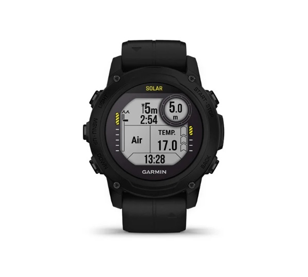 Этот прочный компьютер для подводного плавания выдерживает погружение на глубину до 100 метров, оснащен сапфировым стеклом и соответствует стандарту MIL-STD-810.