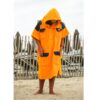 Большое двухцветное мочалка-пончо с капюшоном, которое натягивается как свитер, и под которым можно переодеться или остаться на месте.